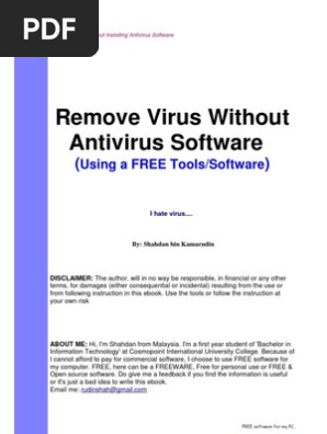 103. 71. Introduction: Removing a Virus Without Using Any Anti-virus Software. Virus is a computer program that can copy itself and infect computers. The term "virus" is erroneously used to refer to other types of malware, including adware and spyware programs that do not have the reproductive ability. A true virus can spread from one computer ... 10. jan. 2022 ... If you're in a pinch, you can attempt to remove common computer viruses without antivirus software with the help of command prompt. July 21, 2021 - Looking to get rid of a computer virus without using traditional AV apps? It's possible, but it isn't easy. How to Remove a Virus Without an Antivirus Software One of the most important things you could download to your computer is an antivirus, considering that the 2.0 world has been experiencing a massive improvement not only in useful tools and programs, but also in numerous viruses that could affect you in different ways .